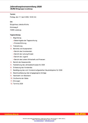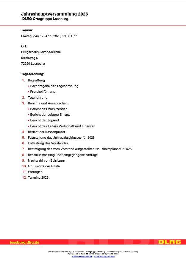 Die Hauptsversammlung der DLRG OG Lossburg findet